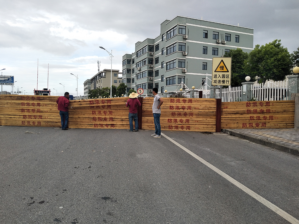(圖為工作人員對整個工業(yè)園區(qū)做防汛工作)